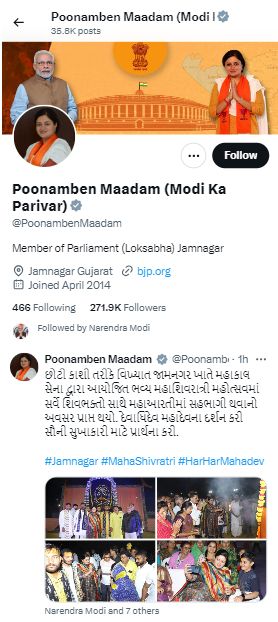 Poonamben Maadam, the Member of Parliament (MP) representing Jamnagar since 2014, has distinguished herself as a dedicated and dynamic political leader. With a relentless commitment to her constituents, she has played a pivotal role in driving positive changes within the region. Poonamben Maadam’s tenure has been marked by a focus on sustainable development, infrastructure enhancement, and welfare initiatives, earning her widespread respect. As a proactive MP, she continues to strive for the betterment of Jamnagar, leaving a lasting impact on the community she serves.